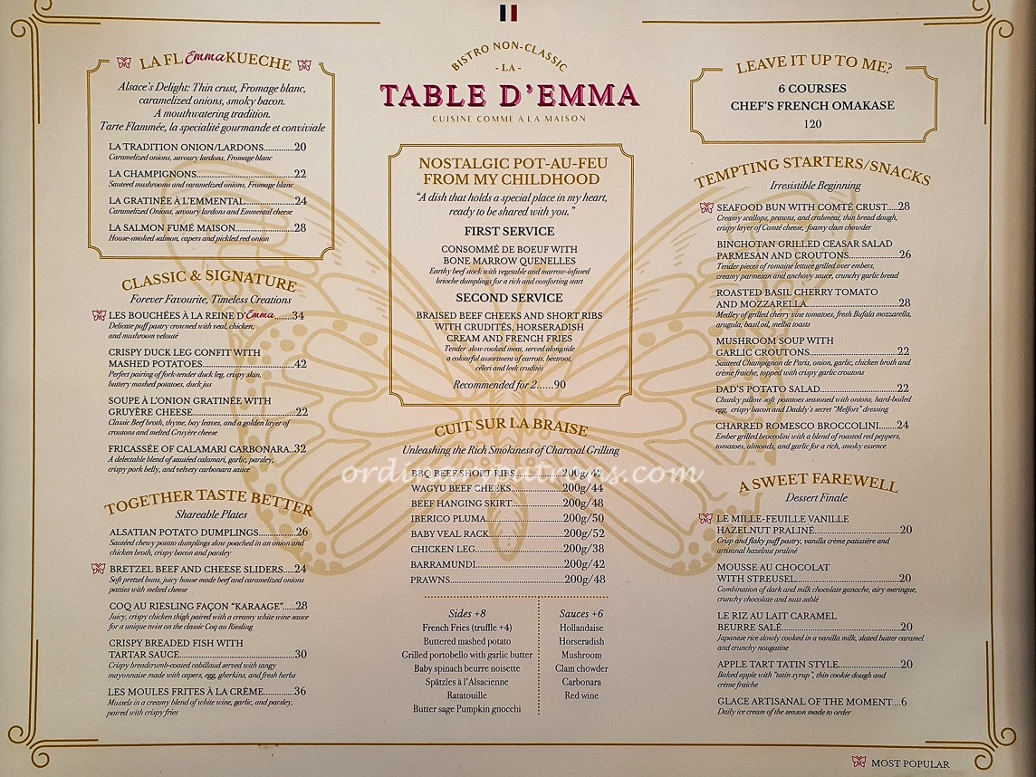 La Table d’Emma Menu