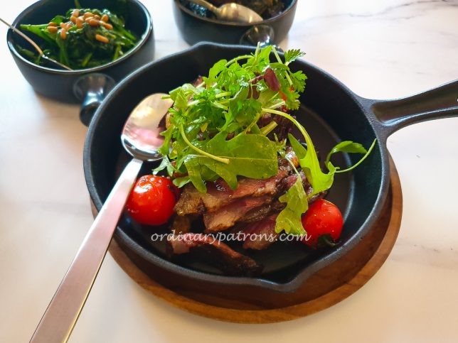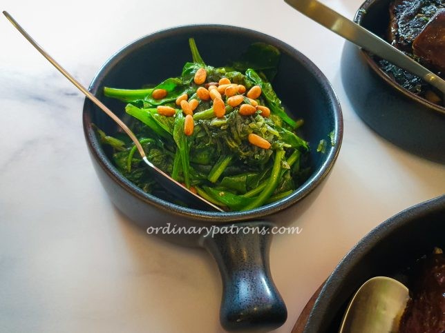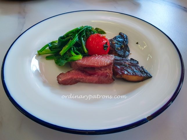 We had a couple of side dishes ($8) as well – grilled portobello with garlic butter and baby spinach beurre noisette. The portobello was good, we liked the spinach less as it was very salty.