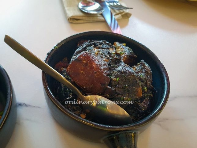 Our final main course was braised Wagyu beef cheeks (200g/$44). This is the kind of French food that falls under the cuit sur la braise section of the menu. A quick Google translation : “cooked on the embers”. The beef cheeks must have been slowly cooked over charcoal a long time, making each slice was almost tofu soft and coated with a rich and flavourful gravy.