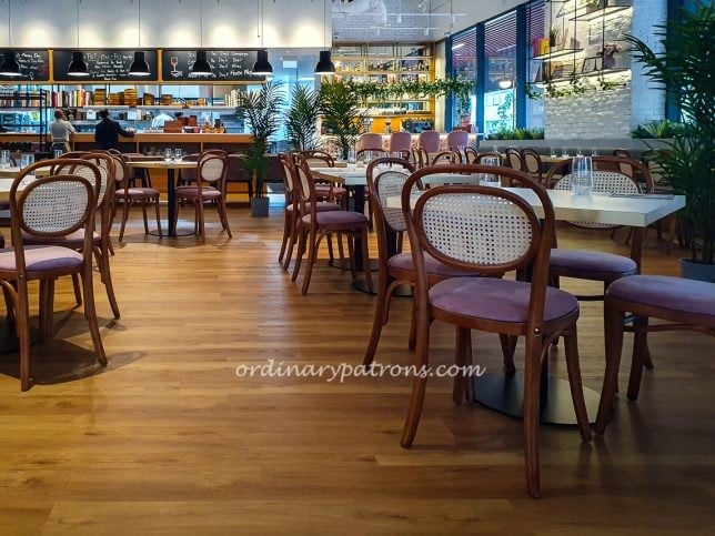 At eye level, the restaurant has the warmth of a traditional French bistro with wooden flooring and bentwood chairs. But up on the ceiling, the exposed building structures for ventilation and air-conditioning, gives out inconsistent industrial vibes. The solution was not to look up and just focus on the nice lower parts of the restaurant. At the time of our lunch on a weekend, La Table d’Emma restaurant was not busy.