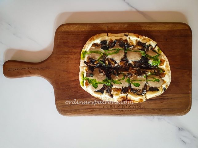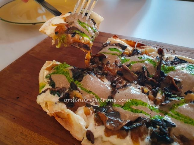 Known locally as ‘Flammekueche’, this dish is an Alsatian tarte flambée. From a quick internet search, this is a type of flatbread from Alsace. We picked “LA CHAMPIGNONS” ($22) made with sauteed mushrooms and caramelized onions and cheese. It reminded us of a small pizza. But the crust is much lighter and thinner. The toppings were also more refined. It worked well as an appetiser.