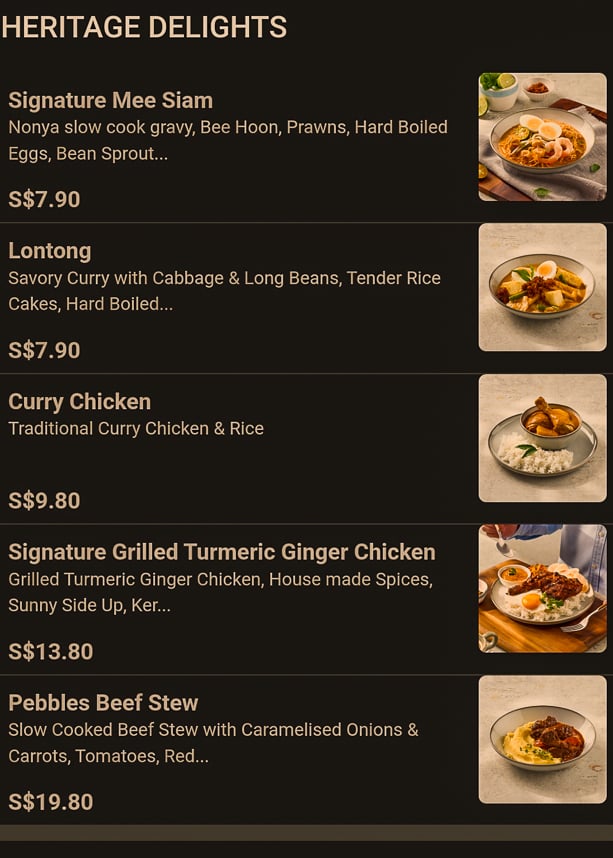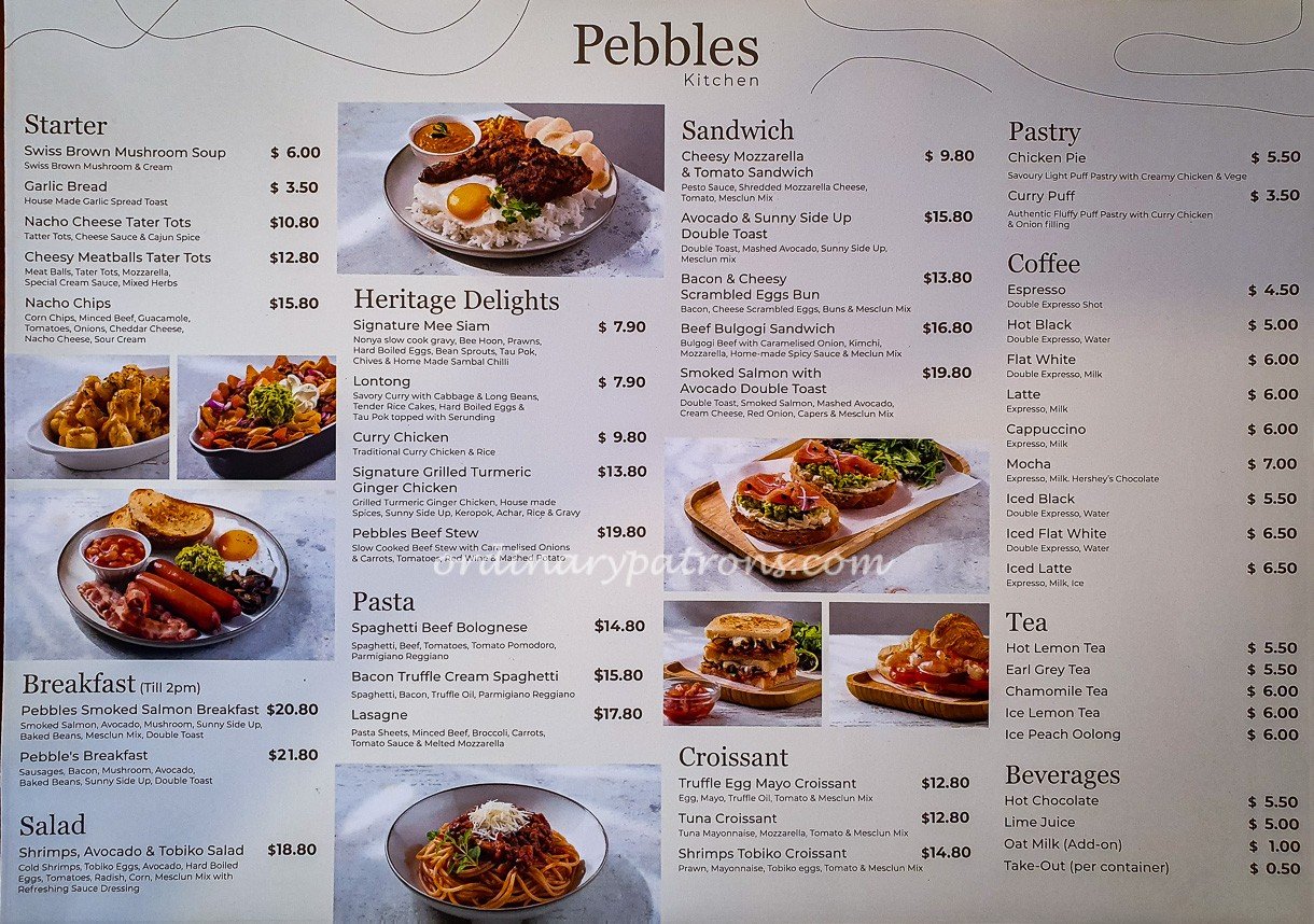 The menu of Pebbles Kitchen is not extensive. Besides the typical cafe fare, they have a Heritage Delights section listing their signature dishes such as mee siam, turmeric ginger chicken and beef stew. The prices are reasonable.