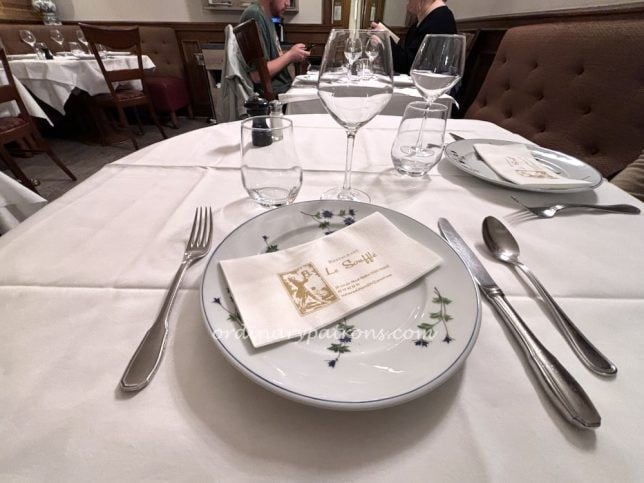 Only a ten minute walk from the famous Paris museum which attracts large crowds (the above picture was taken early in the morning before the tourists are awake), Le Soufflé Paris, was an oasis of calm. With a traditional decor of wood panelled walls and simple white table cloths, this was a fitting place to try soufflé which according to Wikipedia is “…a baked egg dish originating in France in the early 18th century…”.