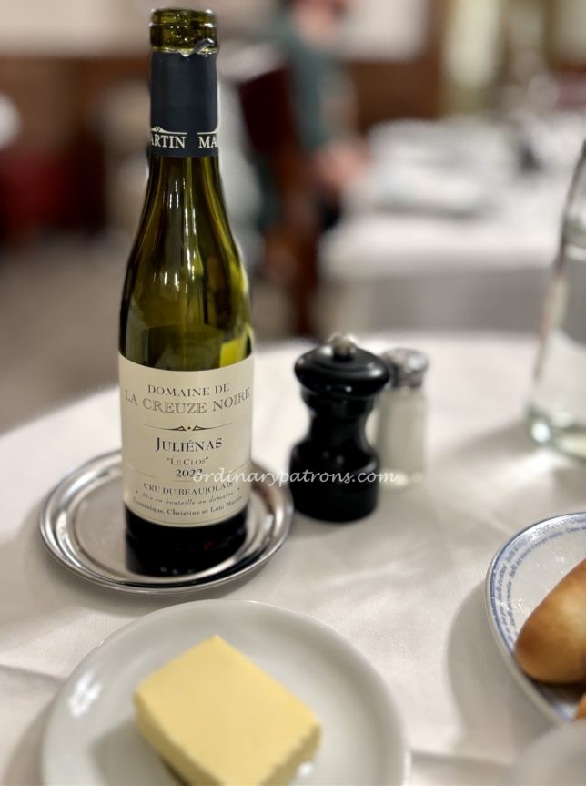 It was nice to see many types of wine available in half bottles, which is just adequate for light drinking at lunch time. We tried a 2022 Domaine de la Creuze Noire Juliénas ‘Le Clos’ (20 €) from the Beaujolais region.
