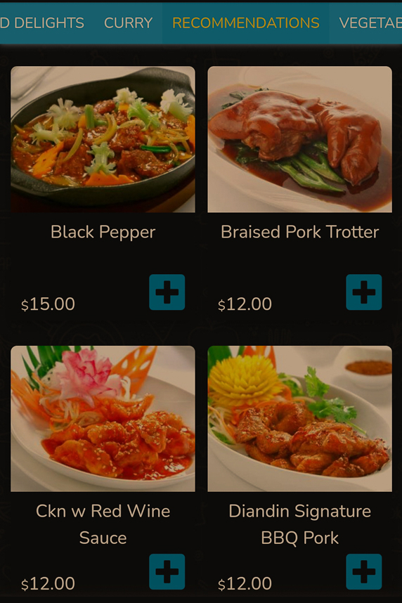 Diandin Leluk’s menu is extensive. All the familiar Thai favourites are present, from salads, curries, and soups to one-dish rice and noodle meals. There are also more substantive main dishes such as Royal Fish Maw Soup, Braised Pork Trotter, and Chicken with Red Wine Sauce.