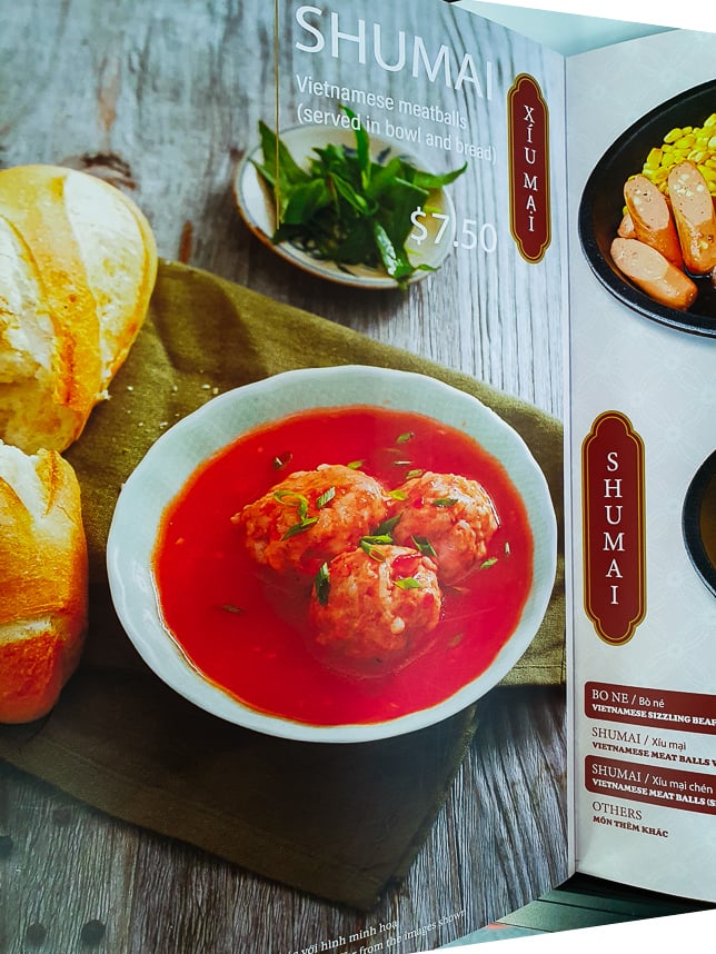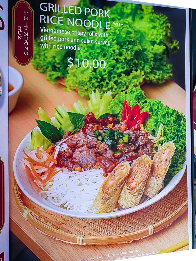 Keep an eye out for specials like Bun Mam (Vietnamese Fermented Fish Noodle Soup) and Bun Rieu (Tomato Noodle with Tofu, Meatball and Pork Roll).