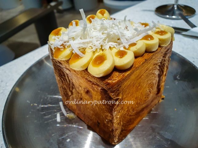 I opted for the Ondeh Croissant Cube ($7.80). It was a creation which married the buttery flakiness of a French croissant with the local flavours ondeh-ondeh. The presentation was beautiful โ a golden-brown croissant drizzled with gula melaka coconut cream and topped with toasted coconut flakes. The croissant was crispy but had a soft, moist interior with gula melaka filling. It was a delightful way to enjoy croissant.