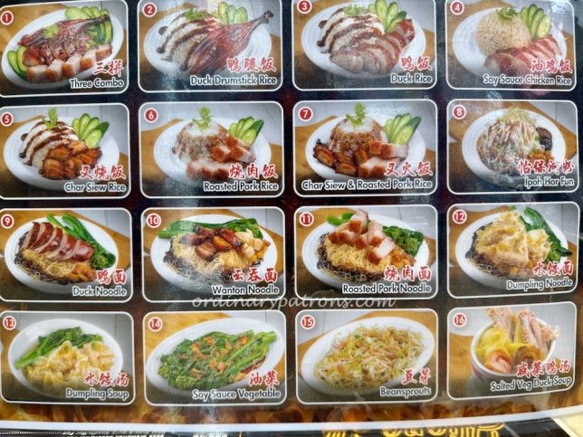 Here are pictures of the menu. Roast or soy sauce chicken rice starts from $6.90, wanton noodle costs $7.50 and a whole roast duck costs $54.