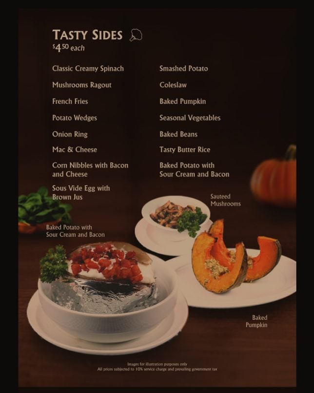 Astons Prime also offers affordable lunch sets. Guests can choose to start with either a soup or salad, followed by a main course, and finish their meal with a dessert or a beverage. It is also possible to create your own sets by choosing a main course and adding sides and other items. Below are pictures of the menu for lunch sets.