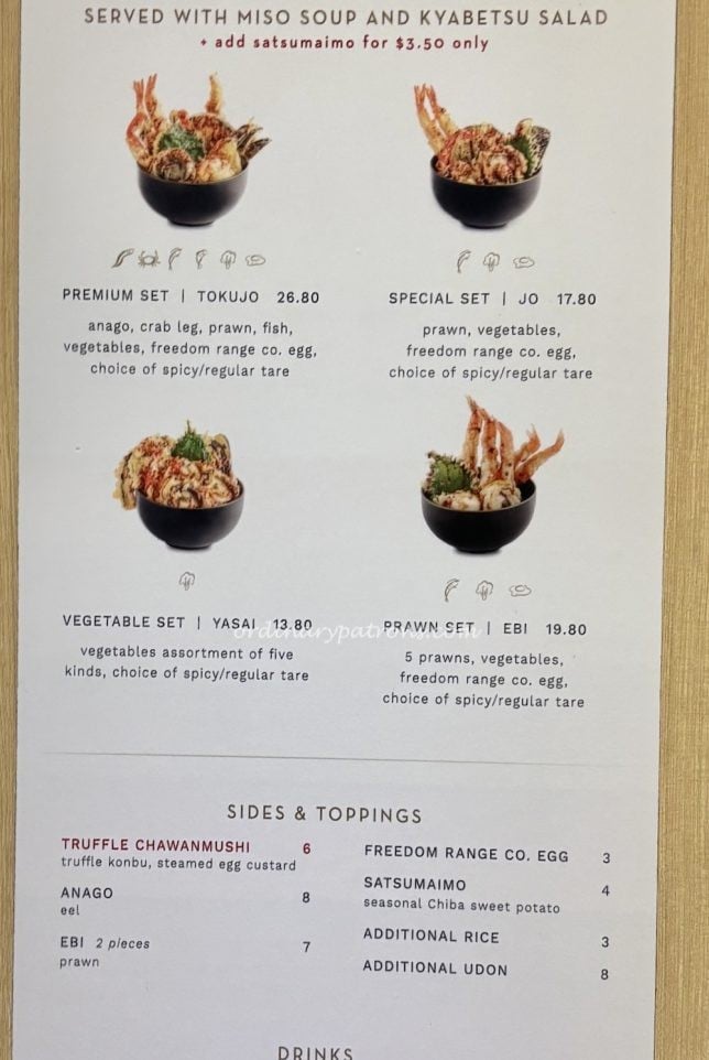 The two tendon set meals that we tried prior to the move to the new location were the inaniwa udon set ($27.80) and the prawn tendon set ($19.80).