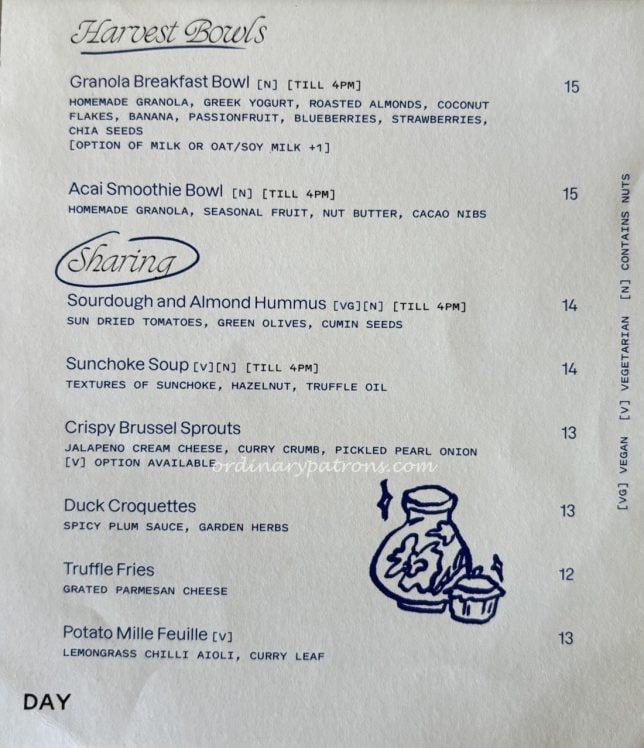 Here are pictures of the Brunch Menu, Set Lunch Menu and a la carte menu. The menu items look like typical hip cafe dishes, such as all day breakfast, different types of toast for brunch and roast chicken, steak and fish for lunch. But we were pleasantly surprised by how different they turned out from typical cafe food.