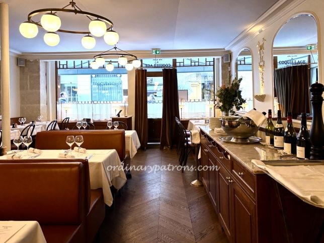 The restaurant is situated in a very convenient location. It is a few minutes walk from either the Louvre or BnF Richelieu. Reflecting its seafood theme, the restaurant decor is said to be “evocative of a cruise ship”. To us it reminds us of old school “proper restaurants” in Singapore, such as the Gordon Grill which we wrote about recently. Warm lighting, white crisp tablecloths, heavy wooden furniture and a tranquil atmosphere are things these restaurants have in common. We had lunch on a weekday when it was quiet.