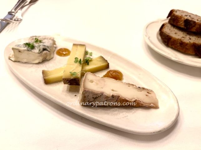 We supplemented the lunch menu with a couple of other items. The steak of tuna (35 euros) had a good combination of fish and vegetables. The pieces of fish were not bad but was enhanced by the generous amount of vegetables. The mixed cheese selection (18 euros) was not as good as the preceding dishes.