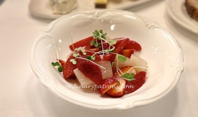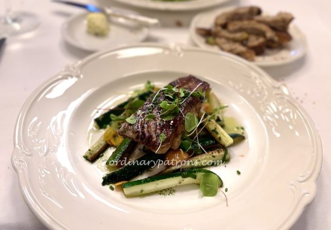 Expecting seafood to dominate our lunch we focused our attention on the white wine sections of the restaurant’s wine list. The range was wide enough, with prices starting from 45 euros to more than a thousand euros for a bottle. We settled on a modest bottle of Sancerre – 2022 Domaine Pierre Morin (52 euros).