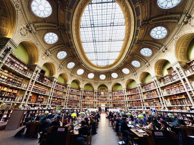 Most of our friends visiting Paris know of the Louvre. But quite a few of them have not heard of the Bibliothèque Nationale de France (BnF), literally the National Library of France. One of the main sites of BnF is the Richelieu site which occupies a full city block in Paris. Visits to some parts are restricted but some are open to the public. The most appealing area for us on this visit was the the Oval Room. It is a library open to the public, free of charge. There are about 20,000 works at this location, including a collection of 9,000 comics. This would be a good place to get some peace and quiet in between other tourist attractions in Paris.