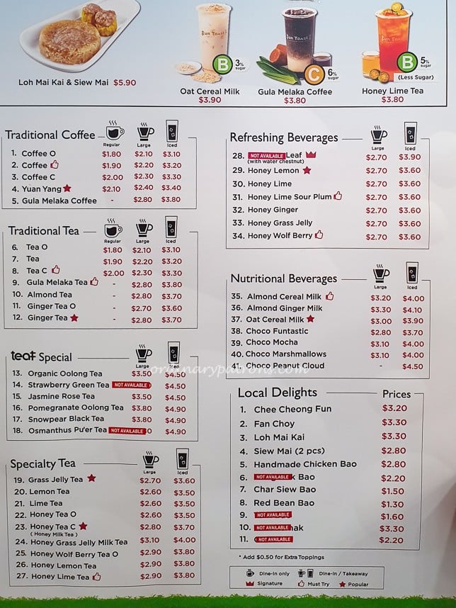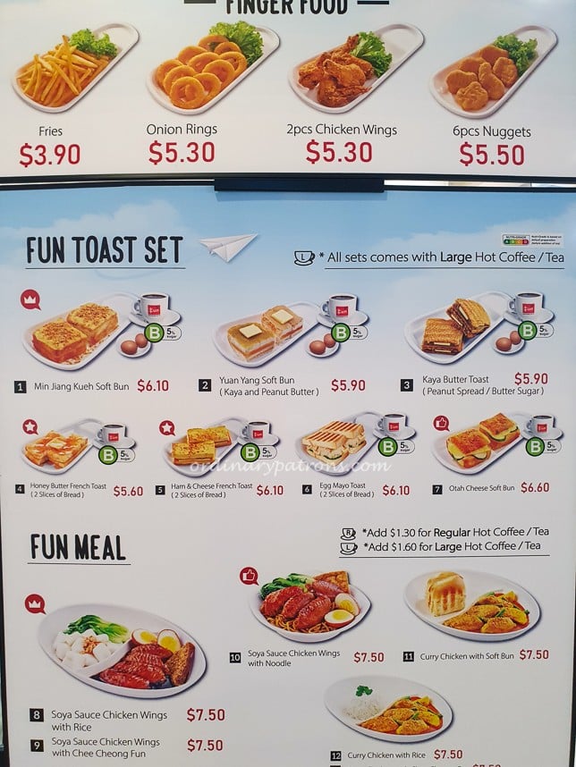 Fun Toast #B1-01 – serves local coffee and toasts and hot food such as curry chicken rice and chicken nuggets.