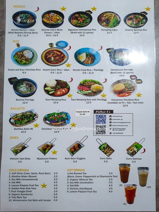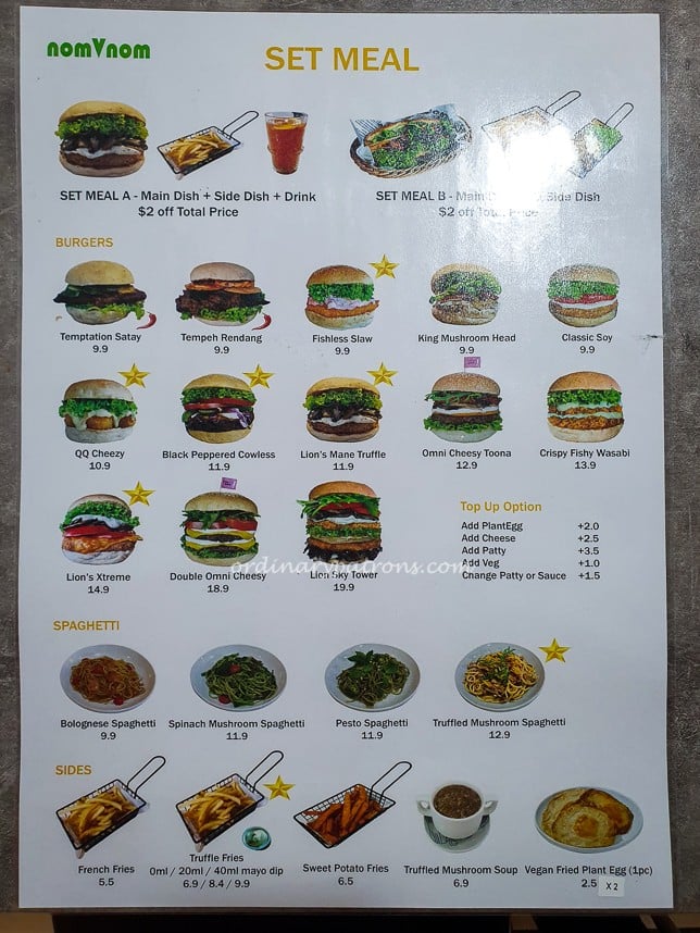 nonVnom #B1-02 – serves vegetarian burgers as well as pasta and Asian rice and noodle dishes.