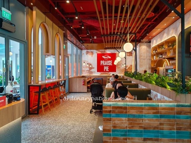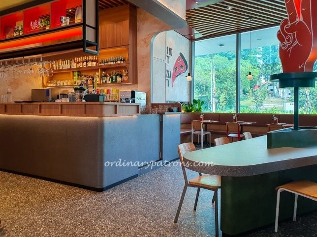 The new pizza restaurant of Extra Virgin Pizza is located on the ground level of One Holland Village. There is quite a large dining section out in the naturally ventilated patio. Inside, the bar is the focal point, surrounded by a mix of seating options to suit all party sizes. There are cosy booths, bench seating as well as high stools. The interior has a stylish yet relaxed feel, with a clever blend of materials and pops of colour.