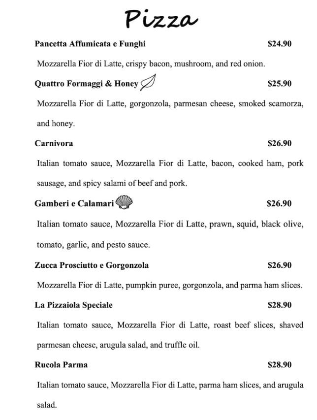 La Pizzaiola @ Bukit Timah Menu