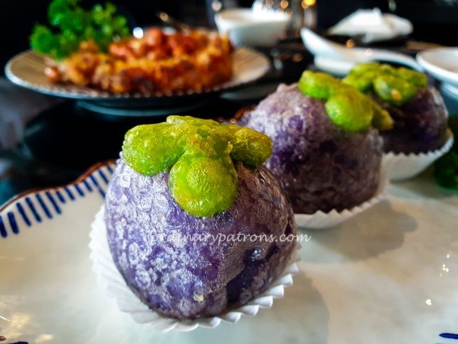 The Almond Cream Mangosteen was a dessert featuring glutinous rice flour balls shaped and coloured to resemble mangosteens. These balls were filled with a rich and creamy Chinese almond cream. The exterior had a chewy, mochi-like texture, while the warm filling was slightly sweet with a subtle nutty flavour. It was an enjoyable dessert.