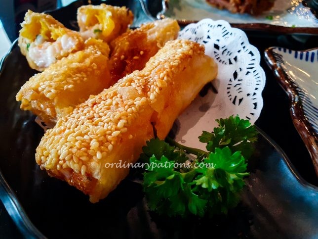 During our dim sum lunch at Black Society in UBS Building, the first item we selected was the familiar Crispy Prawn Mango Salad Roll ($7.50). That aside, we decided to venture beyond our usual favourites and explore other interesting options – the Radish Pancake ($7), Crispy Pumpkin Yam Cake ($7) and Almond Cream Mangosteen ($7.50).