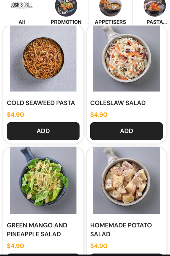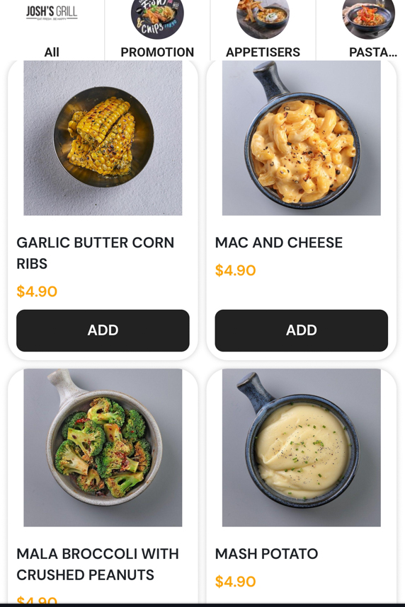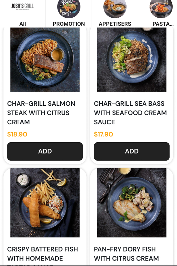 Below are screenshots of the digital menu of Josh’s Grill Novena.