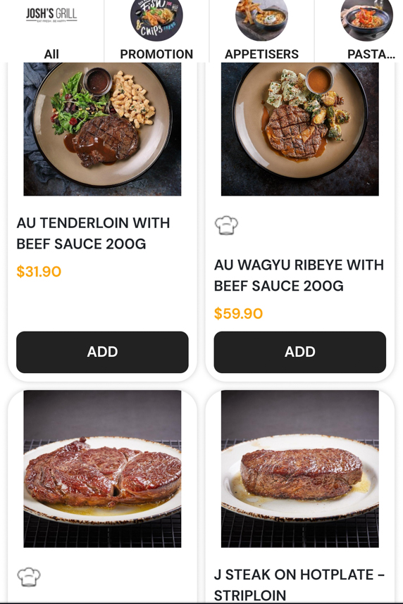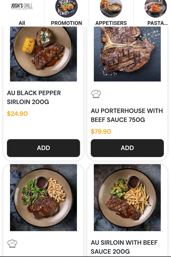 Josh’s Grill offers a diverse menu of Western fare, featuring everything from classic grilled meats to seafood and pasta. Some of their popular dishes include Josh’s Famous Onion Rings, Steak on Hotplate, Char-grill Chicken Chop, Crispy Duck Confit and Prawn Aglio Olio.
