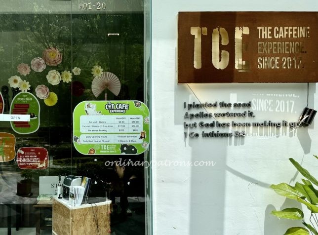 The Caffeine Experience Star Vista has a cat cafe next door. It is called the Cat Experience. Run by the same folks, they have the same acronym, TCE. Cat and coffee is an irresistible attraction. And so, that was where we headed to for coffee after our heavy Peranakan meal at Verandah @ Rael’s which is just around the corner.