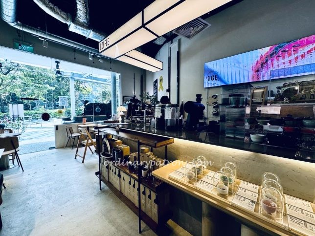 The cafe part of this post is likely to be less interesting to our readers (and also to us). It has the same hip cafe look. A semi-industrial look with exposed aircon ducts and wiring, simple tables and chairs and some impressive espresso machines and coffee grinders. A fierce coffee bean roaster is also on display.