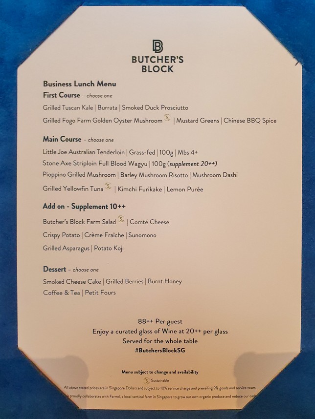 Butcher’s Block offers both à la carte and set menus, as well as exclusive off-menu creations. For a more affordable lunch option, the three-course business set menu is a great choice.