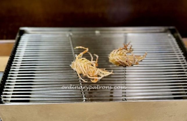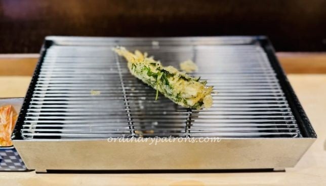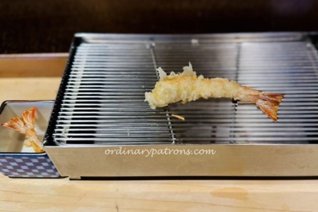 It appears from the Tempura Yamanoue website that the tempura restaurant at Hilltop Hotel store has closed. This leaves the Ginza Six outlet as the flagship and two other outlets at Roppongi and Nihonbashi Mitsukoshi Main Store. Located on the 13th level of Ginza Six, the restaurant enjoys natural light from the large windows. We had good seats at the counter with a front row view of the tempura chef and his assistant.