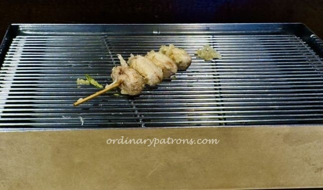 From here onwards, I cannot remember all the details and the sequence of each item served. These are some of the seafood items. The two fish items I can remember were barracuda and sea eel. The items were all very good, fresh ingredients coated with a thin film of batter. The best items were the prawns and oysters.