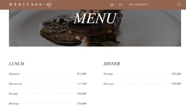Héritage by Kei Kobayashi Menu
