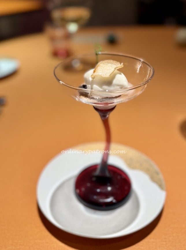 Next to arrive was the Monolith Egg. On the Michelin Tokyo website, it describes Chef Ishii’s speciality of โMonolith Eggโ as a study in contrasts between salty and sweet, hot and cold. I cannot recall exactly what was in the egg, except that it was packed with a mix of different flavours. It also brings to mind the Hen’s Egg at Jaan Restaurant in Singapore where the humble chicken egg was elevated to fine dining greatness.