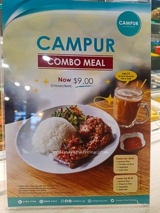 Campurโs menu is a fusion of Malay, Indonesian, and Eurasian influences. Diners can choose from box sets, combo meals, or ร la carte options. One of their signature dishes is the opulent Nasi Ambeng Platter.