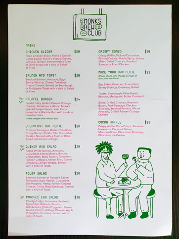 A spacious cafe with a diverse menu for breakfast and brunch – such as falafel burger, salmon avocado toast, quinoa avocado salad, crispy fried cauliflower, waffles and granolas.