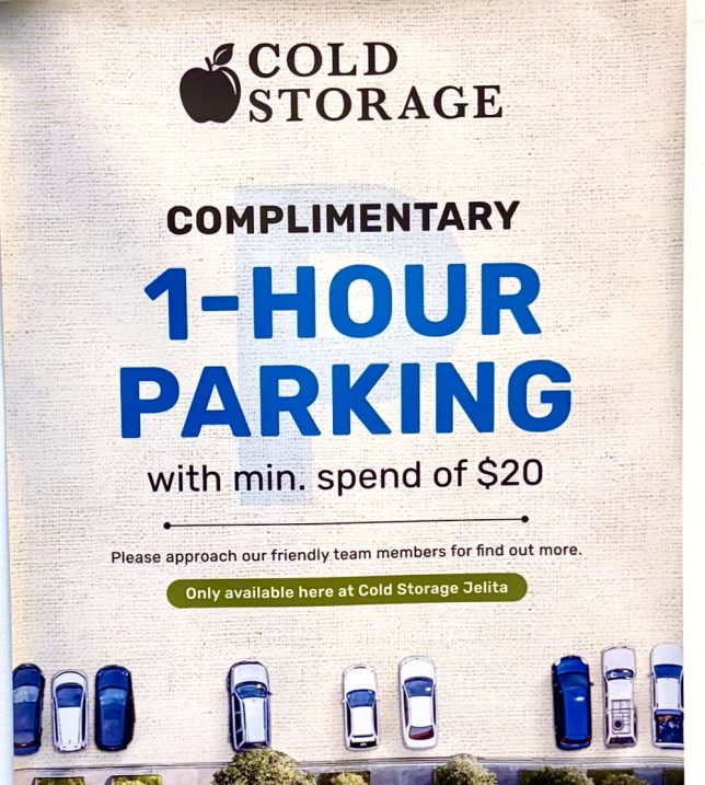 In the past, there was an automatic first hour free parking for everyone at Jelita Shopping Centre. This situation seems to have changed. Shoppers at Cold Storage spending $20 and above can get a complimentary parking ticket at the cashier. We don’t know whether this is obtainable from the other shops.
