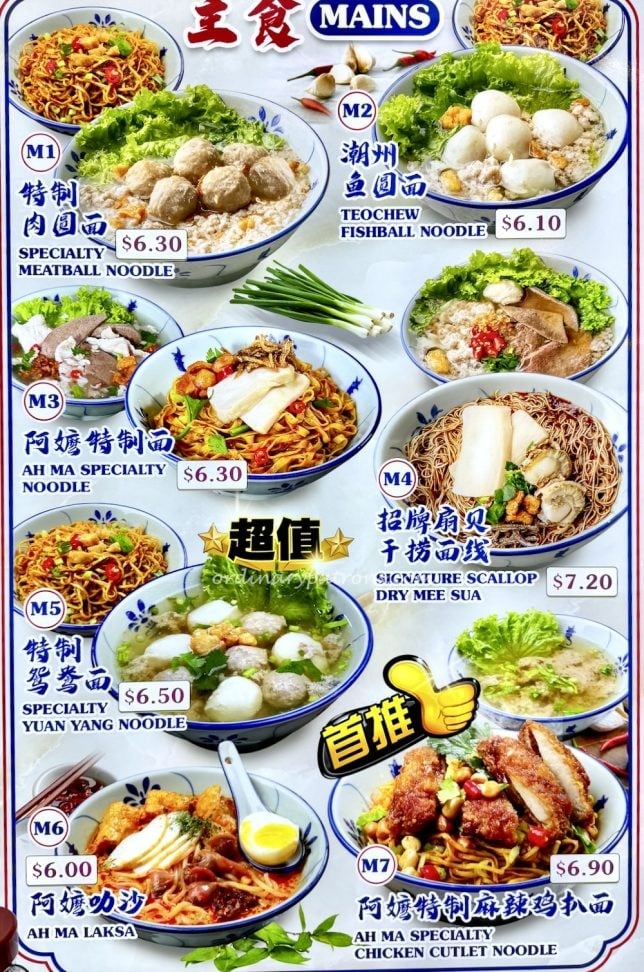 There are several Ah Ma Chi Mian outlets in Singapore. You can find different types of noodles here including Teochew fishball noodles and laksa.