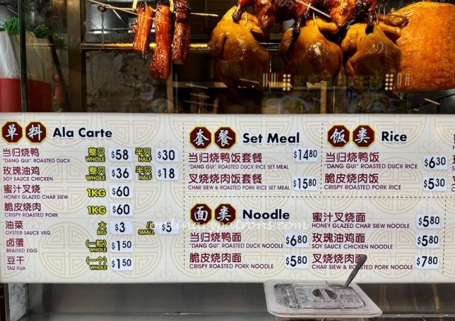 Roast duck, soya sauce chicken, char siew dishes. Served with rice or noodles.