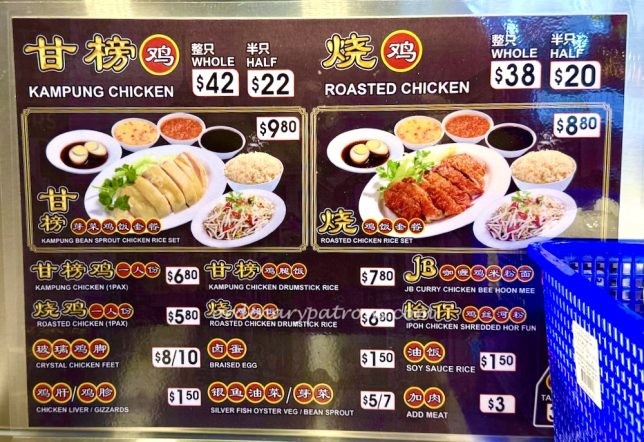 Chicken rice is available with either kampong chicken or regular chicken.