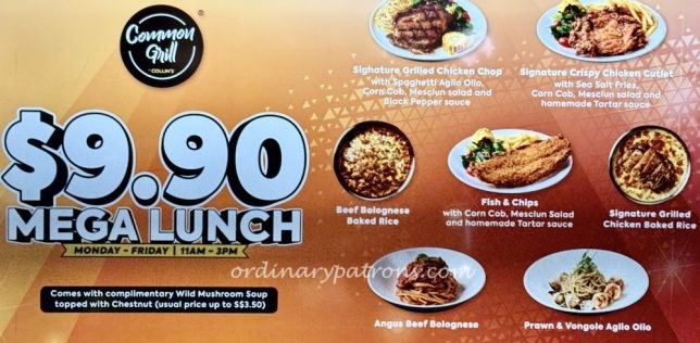 A food court should also have a Western food stall. This function is served by Common Grill by Collin’s. Air-flown ribeye steaks for $19.90 and Angus beef cheese burgers for $15.90 anyone? A weekday “mega lunch” deal is currently offered at $9.90.