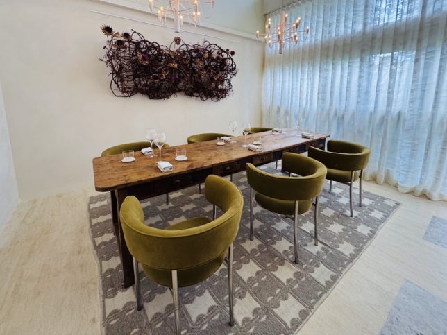 With the assistance of the young and knowledgeable sommelier we landed on a bottle of 2022 Broglia Gavi di Gavi La Meirana, Peimonte Italy ($130++). This crisp, fruity white wine was one of the more affordable ones on the list but performed above expectation.