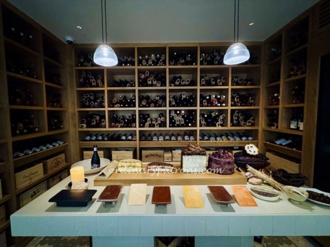 A small wine cellar that also serves as a cheese room. Diners opting for the cheese course get to select their cheese here.