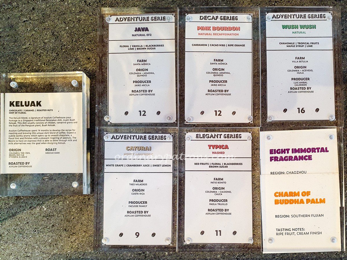 Asylum Coffeehouse is dedicated to the art of coffee. Their speciality is their house-special four-bean Keluak blend, which they said they spent more than a year developing. This signature blend pays homage to the traditional Peranakan dish, Ayam Buah Keluak. It combines beans from Colombia Popayan, Brazil Royale, and Ethiopia Sidamo, to create a medium-dark roast with full-bodied notes of nuttiness and chocolate.