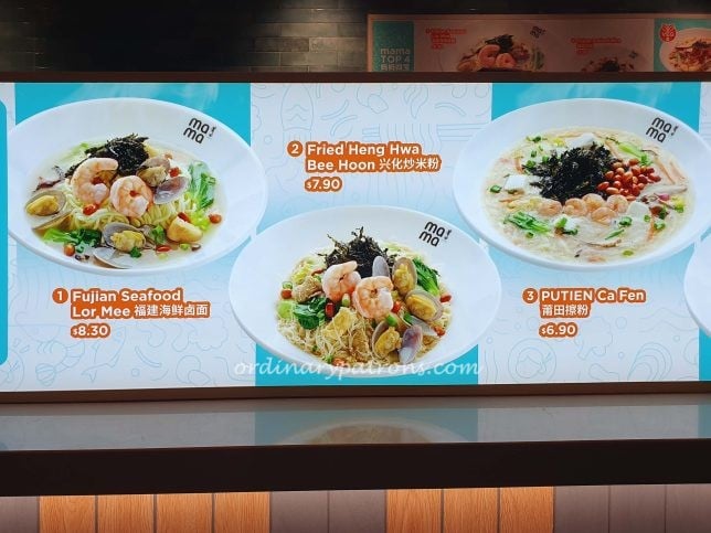 There are several stalls offering popular cuisines from China, like What The Fish for grilled fish and Mama (by Putien Restaurant) for Putien dishes.