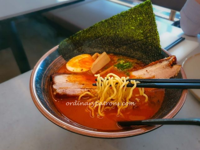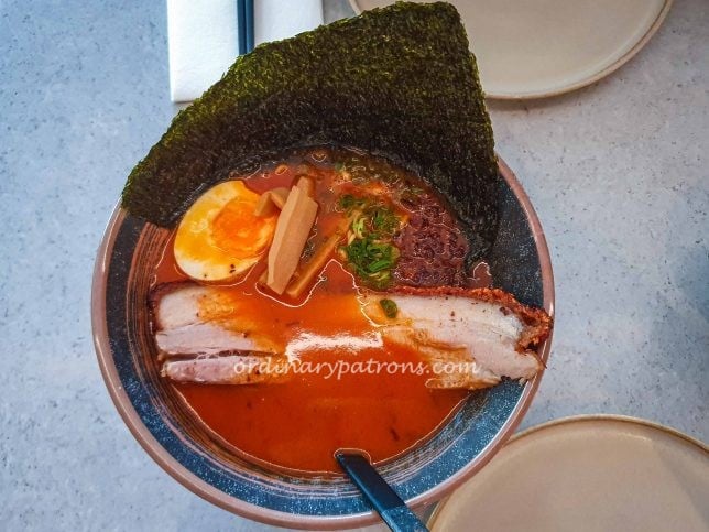 The Prawn Broth Ramen was beautifully presented โ a big bowl of ramen noodles in a vibrant orange-red broth. On top sat a generous piece of crispy pork belly, along with lava egg, bamboo shoots, fried shallots, and a sprinkling of spring onions. The prawn broth was the real star โ rich, full-bodied, and packed with flavour. The crispy pork belly was tender and tasty, with just the right amount of crunch around the edges. It was a comforting, satisfying noodle dish and a great fusion of local prawn mee and Japanese ramen with Western pork belly with crackling.