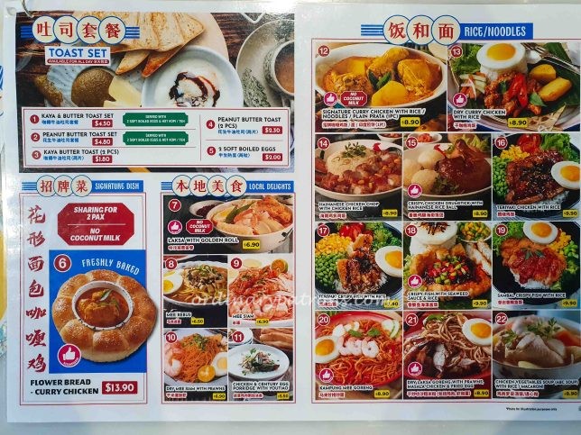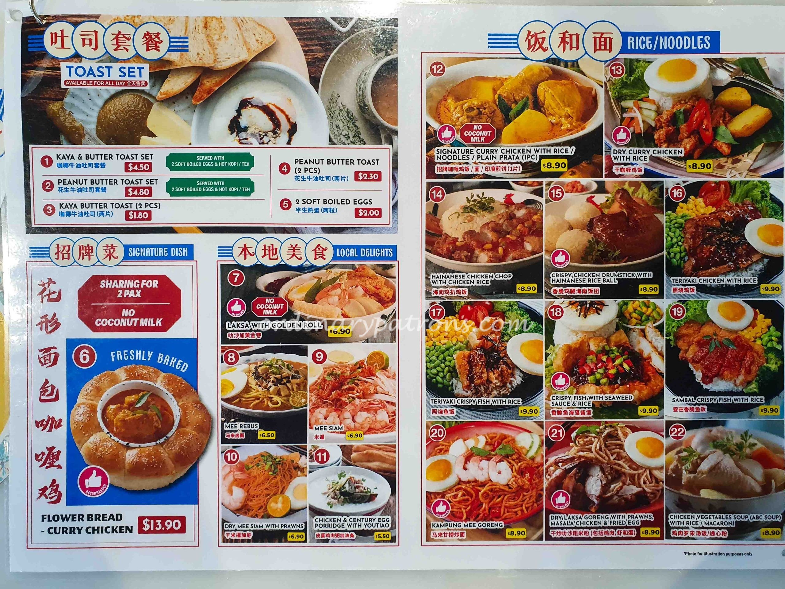 Below are pictures of the menu of Old Chang Kee Coffee House in Tanjong Pagar.