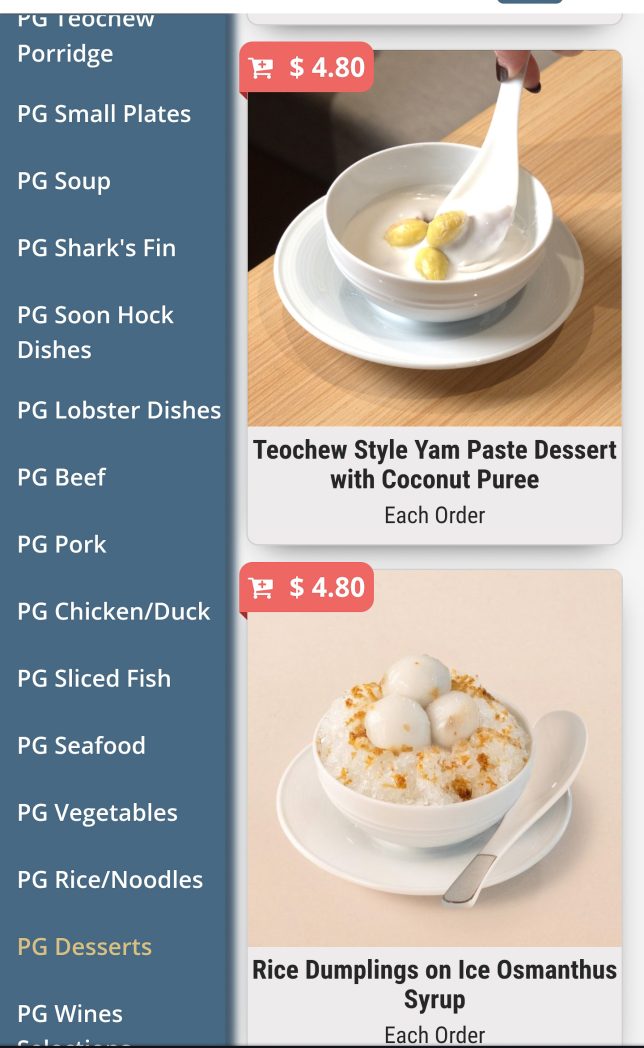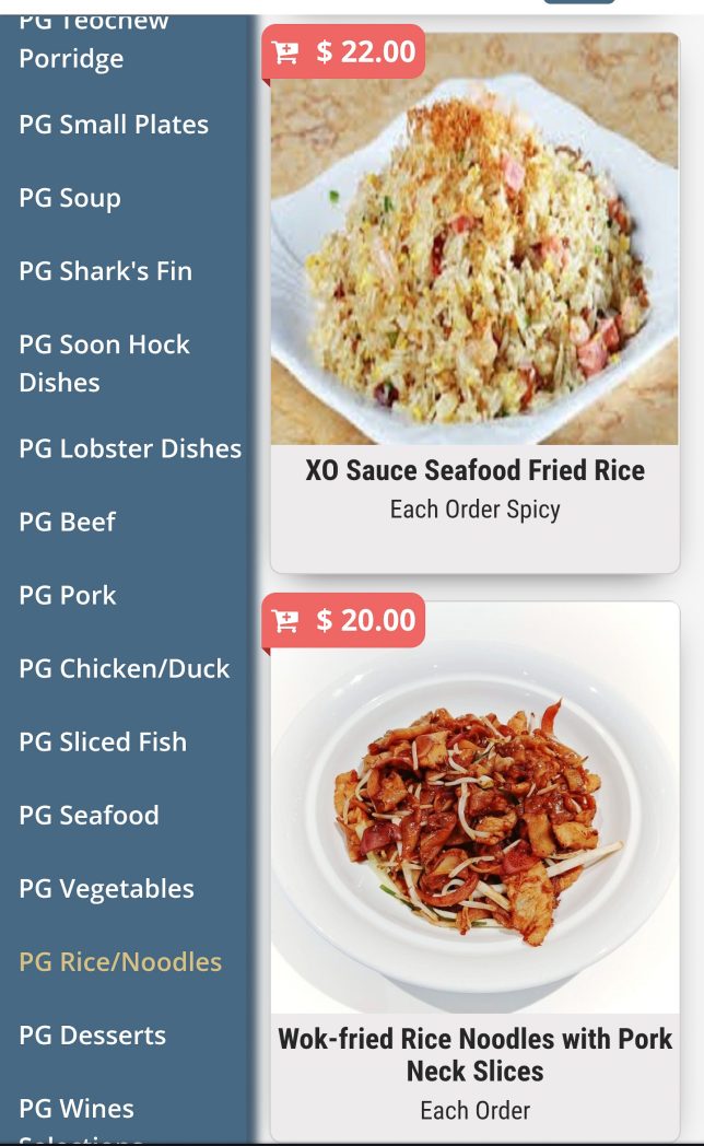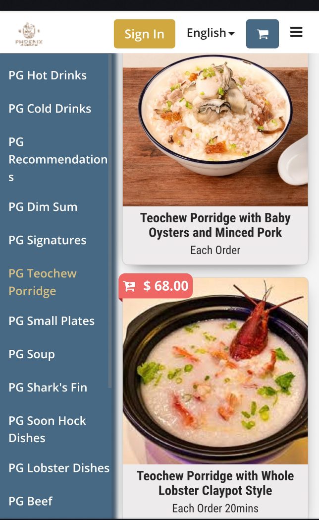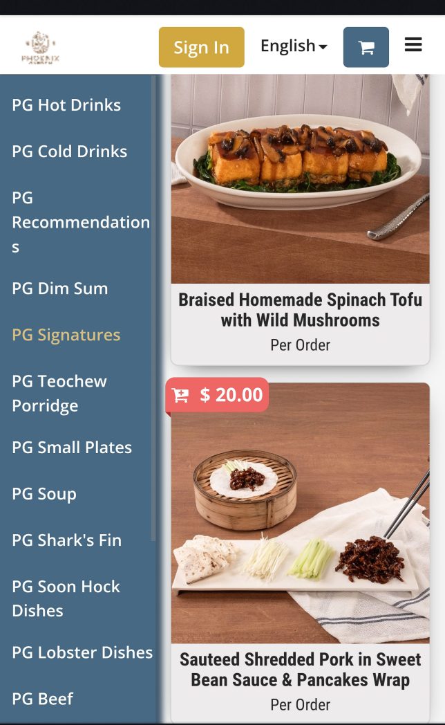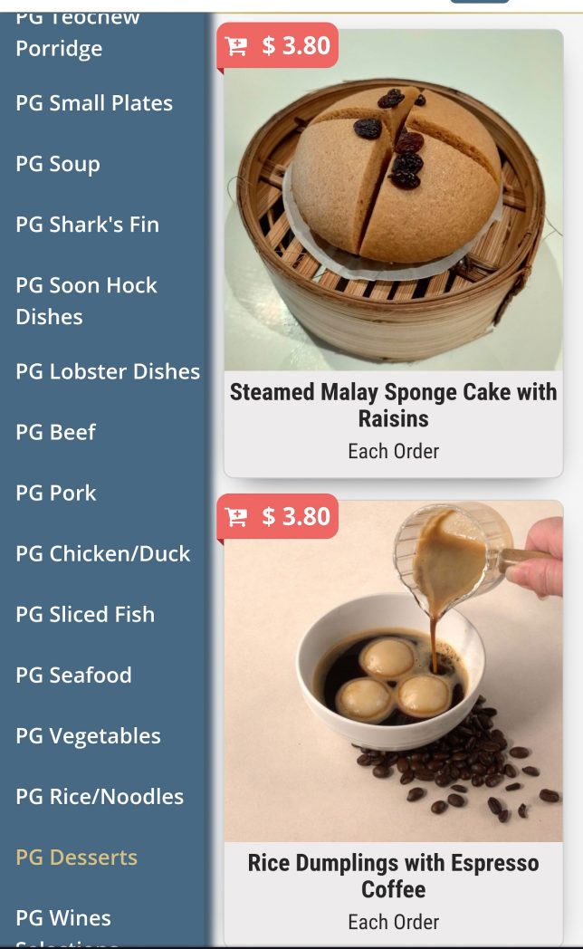 The menu of Phoenix Garden includes all the typical Cantonese restaurant categories: meats, poultry, seafood, soups, vegetables, rice, noodles, and desserts. The dim sum section is rather extensive and includes several interesting and exclusive items.