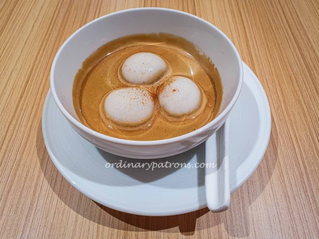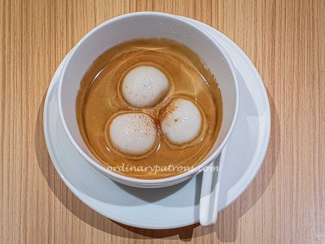 For dessert, we were excited to try the unusual Rice Dumpling with Espresso Coffee ($3.80). True to its name, the dish consisted of three small rice dumplings filled with sesame paste, served in a bowl of strong black coffee. The rice dumplings themselves were soft and chewy, but the pairing with bitter espresso did not work for us. It was an ambitious fusion attempt that would not be a threat to the traditional tang yuan or ah baling.