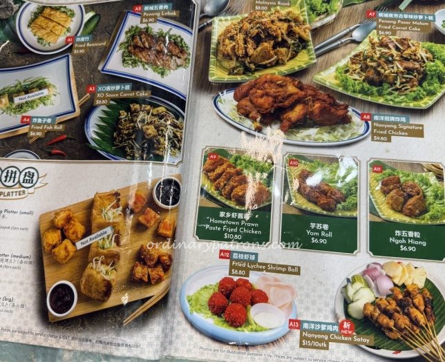 Reminiscent of Japanese restaurants, the menu is big and glossy with lots of colourful and clear pictures. Here are pictures of a few sample pages of the menu featuring Nanyang highlights such as nasi lemak, noodle dishes and side dishes such as ngoh hiang and satay. The full NYD menu is available online (link below).